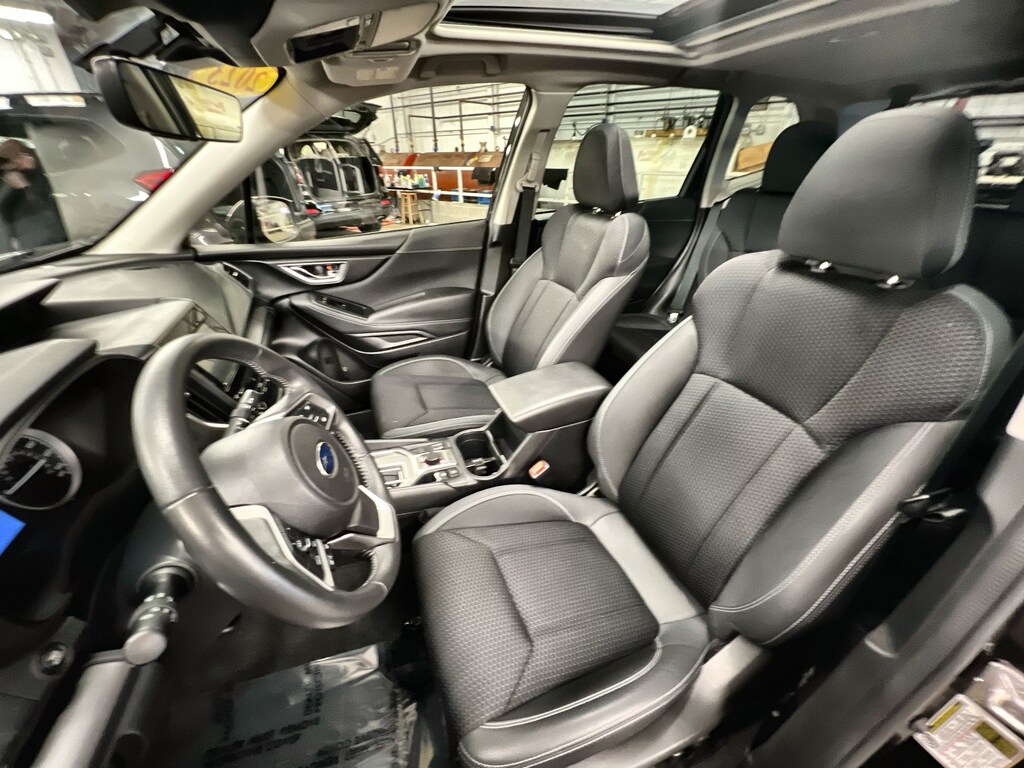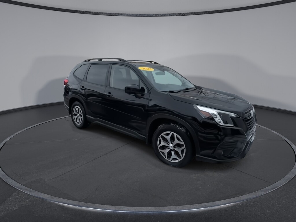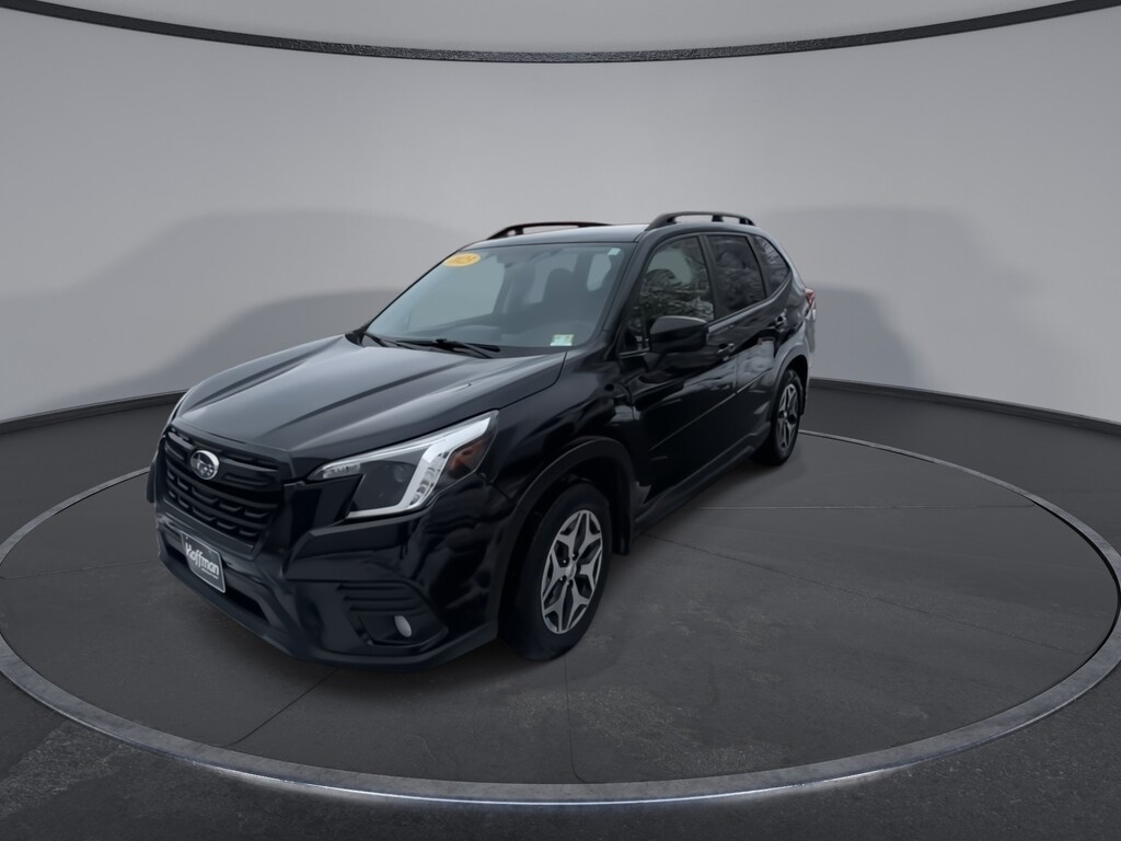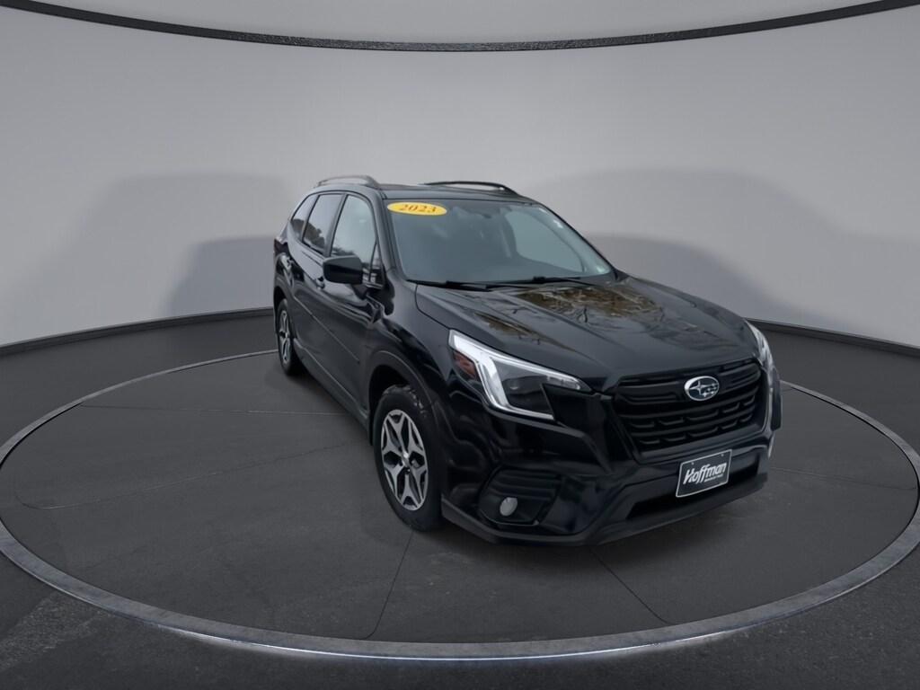 CARFAX One-Owner. Subaru Forester Premium 2023 Certified. 4-Wheel Disc Brakes, ABS brakes, Air Conditioning, Alloy wheels, Anti-whiplash front head restraints, Auto High-beam Headlights, Automatic temperature control, Blind Spot Detection w/RCTA & Power Rear Gate, Blind-Spot Detection (BSD), Brake assist, CD player, Driver vanity mirror, Driver's Seatback Divided Pocket, Dual front impact airbags, Dual front side impact airbags, Dual USB Charge Ports, Electronic Stability Control, Emergency communication system: STARLINK Safety and Security (Subscription Required), Exterior Parking Camera Rear, EyeSight System, Four wheel independent suspension, Front fog lights, Front reading lights, Fully automatic headlights, Heated door mirrors, Heated Front Bucket Seats, Illuminated entry, Knee airbag, Low tire pressure warning, Multi-Function High Grade Display, Occupant sensing airbag, Outside temperature display, Overhead airbag, Overhead console, Panic alarm, Passenger vanity mirror, Power door mirrors, Power driver seat, Power moonroof: Panoramic, Power Rear Gate, Power steering, Power windows, Premium Cloth Upholstery, Radio: Subaru Starlink 6.5" Multimedia Plus System, Rear window defroster, Rear window wiper, Remote keyless entry, Speed control, Speed-sensing steering, Split folding rear seat, STARLINK/Apple CarPlay/Android Auto, Steering wheel mounted audio controls, Tachometer, Telescoping steering wheel, Tilt steering wheel, Traction control, Trip computer, Variably intermittent wipers. Odometer is 2973 miles below market average!