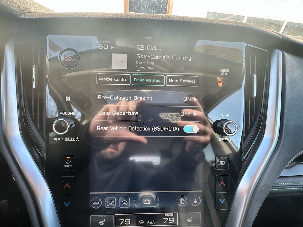 CARFAX One-Owner. Clean CARFAX. Subaru Outback Onyx Edition 2023 Certified. 4-Wheel Disc Brakes, ABS brakes, Air Conditioning, Alloy wheels, Auto High-beam Headlights, Auto-dimming Rear-View mirror, Automatic temperature control, Brake assist, Compass, Driver vanity mirror, Dual front impact airbags, Dual front side impact airbags, Electronic Stability Control, Emergency communication system: STARLINK Safety Plus (3-year free trial), Exterior Parking Camera Rear, Four wheel independent suspension, Front dual zone A/C, Front fog lights, Front reading lights, Fully automatic headlights, Garage door transmitter: HomeLink, Heated door mirrors, Heated Front Bucket Seats, Illuminated entry, Knee airbag, Leather Shift Knob, Leather steering wheel, Low tire pressure warning, Occupant sensing airbag, Outside temperature display, Overhead airbag, Panic alarm, Passenger vanity mirror, Power door mirrors, Power driver seat, Power Liftgate, Power Moonroof, Power Moonroof & Navigation & RAB, Power steering, Power windows, Radio: Subaru STARLINK 11.6" Multimedia Nav System, Rear window defroster, Rear window wiper, Remote keyless entry, Reverse Automatic Braking (RAB) System, Speed control, Speed-sensing steering, Split folding rear seat, StarTex-Trimmed Upholstery, Steering wheel mounted audio controls, Steering Wheel Paddle Shift Control Switches, Tachometer, Telescoping steering wheel, Tilt steering wheel, Traction control, Trip computer, Turn signal indicator mirrors, Variably intermittent wipers.