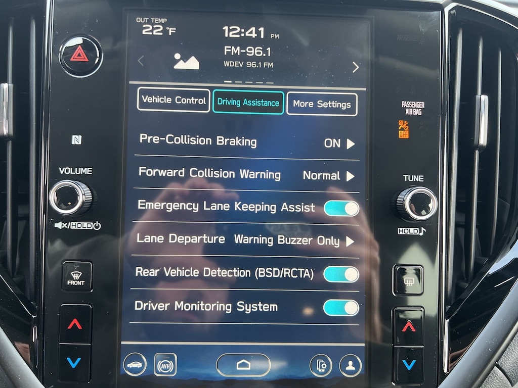 - Forward collision: EyeSight Pre-Collision Braking mitigation