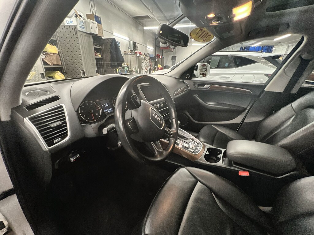 Clean CARFAX. Audi Q5 2.0T Premium Plus 2017 2-Position Driver Side Memory, 3-Step Heated Front Seats, 4-Wheel Disc Brakes, ABS brakes, Air Conditioning, Alloy wheels, Audi Advanced Key, Audi Connect w/Online Services, Audi Parking System Plus w/Rear View Camera, Audi Side Assist, Auto-Dimming Interior Mirror w/Digital Compass, Automatic temperature control, Brake assist, Color Driver Information System w/Trip Computer, Delay-off headlights, Driver vanity mirror, Dual front impact airbags, Dual front side impact airbags, Electronic Stability Control, Four wheel independent suspension, Front anti-roll bar, Front Bucket Seats, Front dual zone A/C, Front fog lights, Front reading lights, Garage door transmitter: HomeLink, Genuine wood console insert, Genuine wood dashboard insert, Genuine wood door panel insert, Heated Auto-Dimming & Power-Adjustable Mirrors, Heated door mirrors, High intensity discharge headlights: Xenon plus, Illuminated entry, Leather Seating Surfaces, Leather Shift Knob, Leather steering wheel, Low tire pressure warning, Occupant sensing airbag, Outside temperature display, Overhead airbag, Overhead console, Panic alarm, Passenger vanity mirror, Power door mirrors, Power driver seat, Power Front Bucket Seats, Power Liftgate, Power moonroof, Power passenger seat, Power steering, Power windows, Premium Plus Package, Radio: MMI Navigation Plus System, Rain sensing wipers, Rear air conditioning, Rear anti-roll bar, Rear fog lights, Rear reading lights, Rear seat center armrest, Rear window defroster, Rear window wiper, Remote keyless entry, Speed control, Speed-sensing steering, Speed-Sensitive Wipers, Split folding rear seat, Stainless Steel Trunk Edge Trim & Door Sills, Steering wheel mounted audio controls, Tachometer, Technology Package, Telescoping steering wheel, Tilt steering wheel, Traction control, Trip computer, Turn signal indicator mirrors, Variably intermittent wipers, Wheels: 8.0" x 19" 5-Arm Star Design.