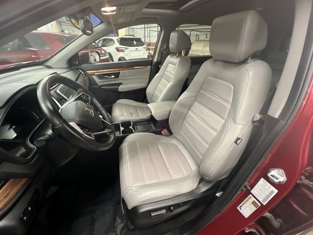 CARFAX One-Owner. Clean CARFAX. Honda CR-V EX-L 2022 4-Wheel Disc Brakes, ABS brakes, Adaptive Cruise Control: Adaptive Cruise Control (ACC) with Low-Speed Follow, Air Conditioning, Alloy wheels, Apple CarPlay/Android Auto, Auto High-beam Headlights, Auto-dimming Rear-View mirror, Automatic temperature control, Blind Spot Information (BSI) System warning, Brake assist, Compass, Delay-off headlights, Driver vanity mirror, Dual front impact airbags, Dual front side impact airbags, Electronic Stability Control, Exterior Parking Camera Rear, Forward collision: Collision Mitigation Braking System (CMBS) + FCW mitigation, Four wheel independent suspension, Front dual zone A/C, Front fog lights, Front reading lights, Garage door transmitter: HomeLink, Heated door mirrors, Heated Front Bucket Seats, Illuminated entry, Leather Seat Trim, Leather Shift Knob, Low tire pressure warning, Memory seat, Occupant sensing airbag, Outside temperature display, Overhead airbag, Panic alarm, Passenger vanity mirror, Power door mirrors, Power driver seat, Power Liftgate, Power moonroof, Power passenger seat, Power steering, Power windows, Radio: 180-Watt AM/FM/HD/SiriusXM Audio System, Rear window defroster, Rear window wiper, Remote keyless entry, Speed control, Speed-sensing steering, Speed-Sensitive Wipers, Split folding rear seat, Steering wheel mounted audio controls, Tachometer, Telescoping steering wheel, Tilt steering wheel, Traction control, Trip computer, Turn signal indicator mirrors, Variably intermittent wipers. Odometer is 10924 miles below market average!