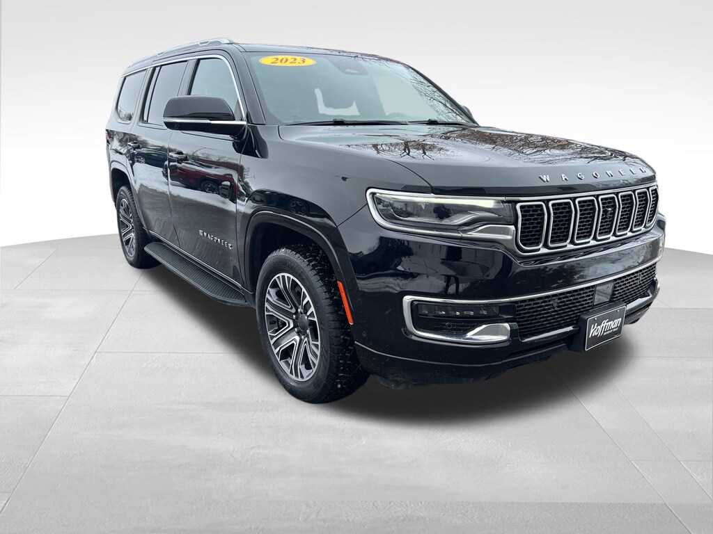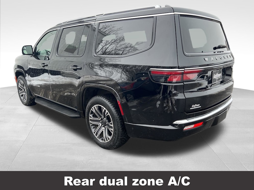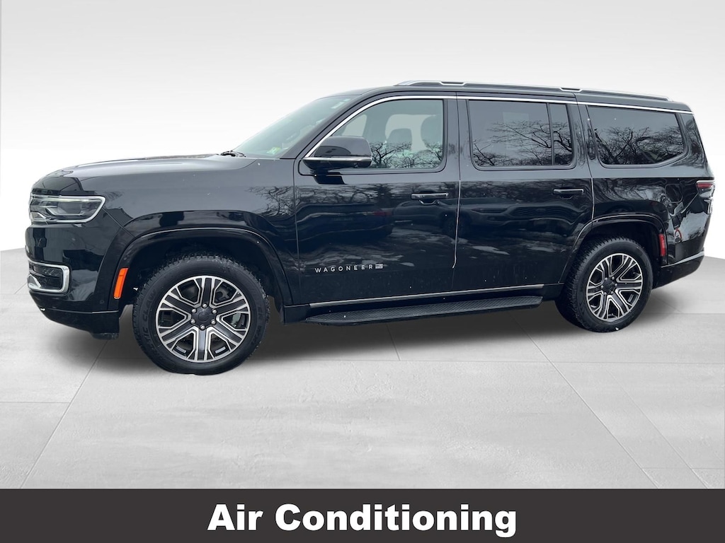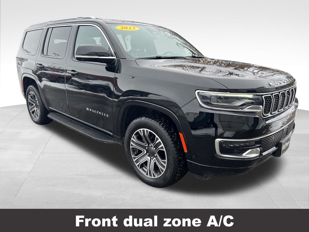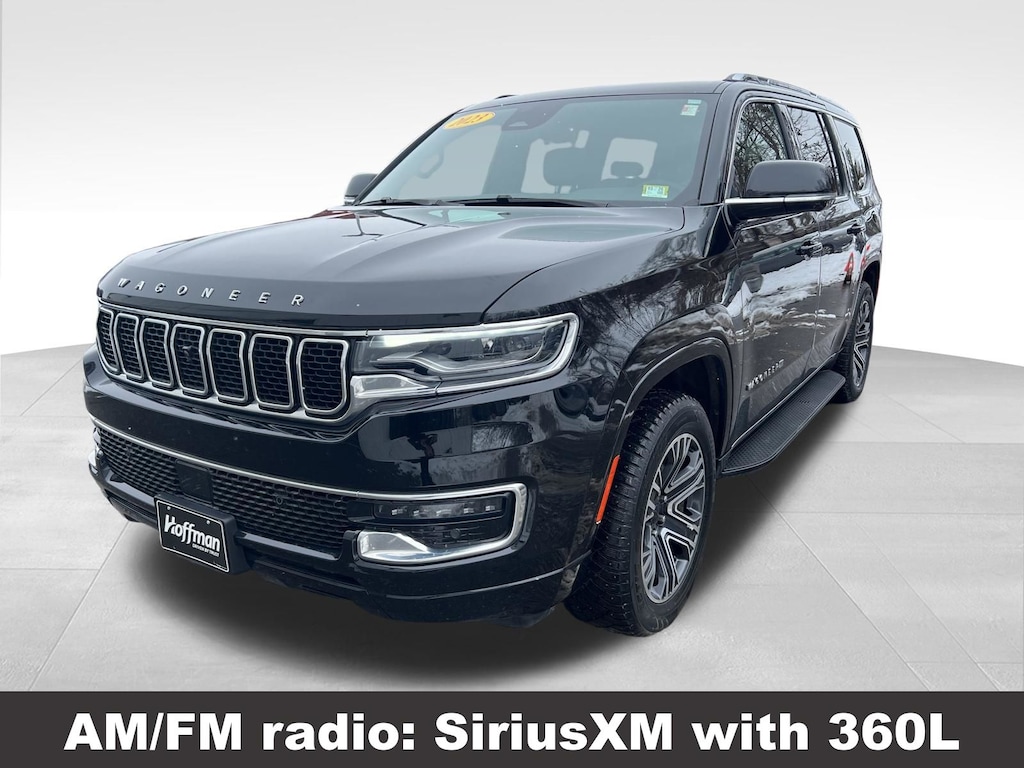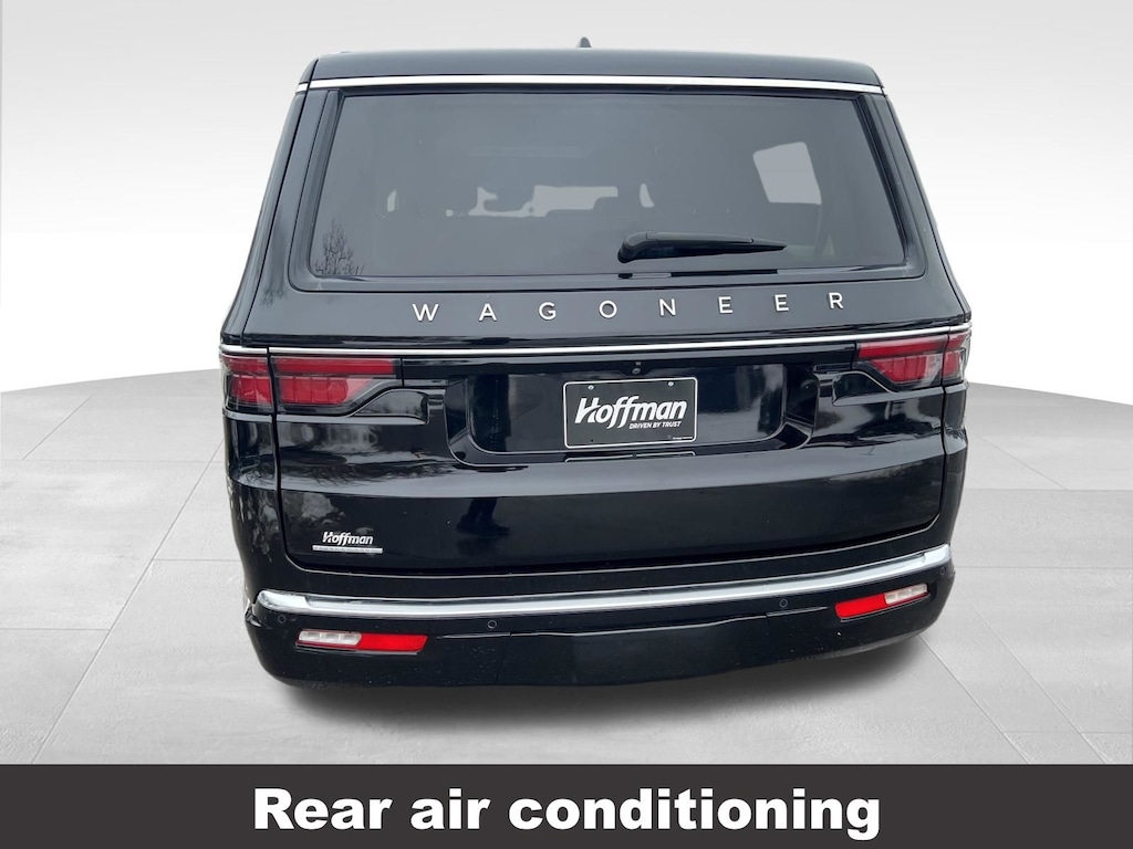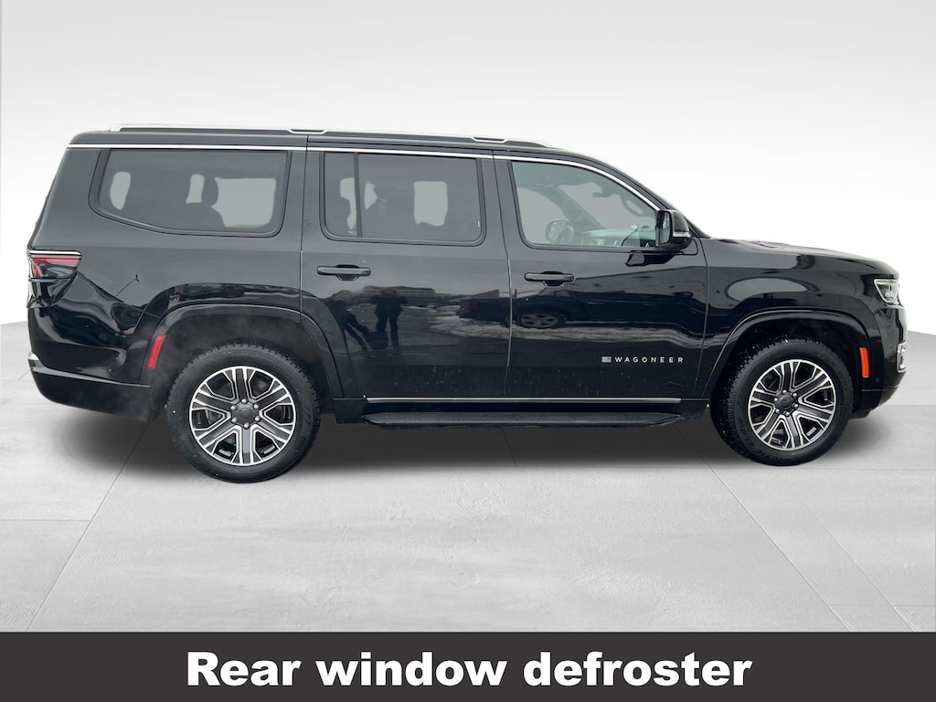 CARFAX One-Owner. Jeep Wagoneer 2023 3rd row seats: bench, 4-Wheel Disc Brakes, ABS brakes, Active Lane Management System, Adjustable pedals, Adjustable Roof Rail Crossbars, Air Conditioning, Alloy wheels, AM/FM radio: SiriusXM with 360L, Anti-whiplash front head restraints, Auto-dimming door mirrors, Auto-dimming Rear-View mirror, Auto-leveling suspension, Automatic temperature control, Brake assist, Compass, Delay-off headlights, Driver vanity mirror, Driver's Seat Mounted Armrest, Dual front impact airbags, Dual front side impact airbags, Electronic Stability Control, Emergency communication system: Automatic SOS Call, Exterior Parking Camera Rear, Four wheel independent suspension, Front anti-roll bar, Front dual zone A/C, Front fog lights, Front Passenger Interactive Display, Front reading lights, Fully automatic headlights, Garage door transmitter, Heated door mirrors, Heated front seats, Heated steering wheel, Illuminated entry, Knee airbag, Leather Trimmed Bucket Seats, Low tire pressure warning, Memory seat, Navigation System, Normal Duty Suspension, Occupant sensing airbag, Outside temperature display, Overhead airbag, P&P Park & Unpark Assist w/Stop System, Panic alarm, Passenger seat mounted armrest, Passenger vanity mirror, Pedal memory, Power adjustable front head restraints, Power door mirrors, Power driver seat, Power Liftgate, Power passenger seat, Power steering, Power windows, Rain Sensitive Windshield Wipers, Rear air conditioning, Rear dual zone A/C, Rear reading lights, Rear window defroster, Rear window wiper, Reclining 3rd row seat, Remote keyless entry, Reversible Carpet/Vinyl Cargo Mat, Side Distance Warning, Speed control, Speed-sensing steering, Speed-Sensitive Wipers, Split folding rear seat, Steering wheel memory, Steering wheel mounted audio controls, Surround View Camera System, Tachometer, Telescoping steering wheel, Tilt steering wheel, Traction control, Trip computer, Turn signal indicator mirrors, Variably intermittent wipers, Ventilated front seats, Voltmeter. Odometer is 4621 miles below market average!