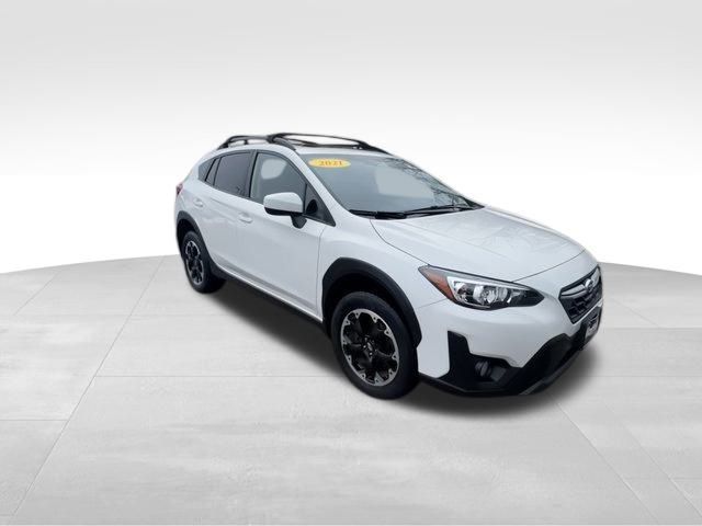 CARFAX One-Owner. Clean CARFAX. Subaru Crosstrek Premium 2021 4-Wheel Disc Brakes, 6-Way Power Driver's Seat, ABS brakes, Air Conditioning, Alloy wheels, AM/FM radio: SiriusXM, Anti-whiplash front head restraints, Automatic temperature control, Blind Spot Detection (BSD), Brake assist, CD player, Driver vanity mirror, Dual front impact airbags, Dual front side impact airbags, Electronic Stability Control, Emergency communication system: STARLINK Safety and Security (Subscription Required), Exterior Parking Camera Rear, EyeSight System, Four wheel independent suspension, Front fog lights, Front reading lights, Fully automatic headlights, Heated door mirrors, Heated Front Bucket Seats, Illuminated entry, Keyless Access w/Push-Button Start, Knee airbag, Leather Shift Knob, Low tire pressure warning, Moonroof Package, Occupant sensing airbag, Outside temperature display, Overhead airbag, Overhead console, Panic alarm, Passenger vanity mirror, Power door mirrors, Power Moonroof, Power steering, Power windows, Radio: Subaru STARLINK 6.5" Multimedia Plus System, Rear window defroster, Rear window wiper, Remote keyless entry, Speed control, Speed-sensing steering, Split folding rear seat, STARLINK/Apple CarPlay/Android Auto, Steering wheel mounted audio controls, Subaru STARLINK Smartphone Integration, Tachometer, Telescoping steering wheel, Tilt steering wheel, Traction control, Trip computer, Variably intermittent wipers.