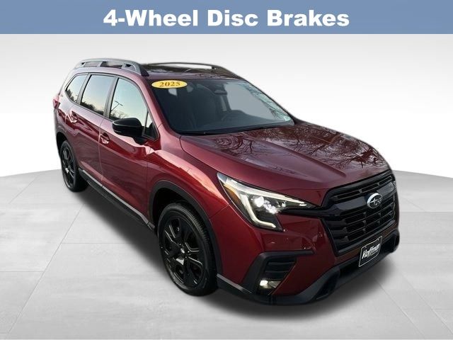 Clean CARFAX. Subaru Ascent Onyx Edition 2025 Certified. 4-Wheel Disc Brakes, ABS brakes, Air Conditioning, Alloy wheels, AM/FM radio: SiriusXM with 360L, Apple CarPlay & Android Auto, Auto High-beam Headlights, Auto-dimming Rear-View mirror, Automatic temperature control, Brake assist, Compass, Delay-off headlights, Driver vanity mirror, Dual front impact airbags, Dual front side impact airbags, Electronic Stability Control, Emergency communication system: MySubaru Safety (3-year free trial), Exterior Parking Camera Rear, Four wheel independent suspension, Front dual zone A/C, Front fog lights, Front reading lights, Fully automatic headlights, Garage door transmitter: HomeLink, Heated door mirrors, Heated Front Bucket Seats, Heated steering wheel, Illuminated entry, Knee airbag, Leather Shift Knob, Leather steering wheel, Low tire pressure warning, Occupant sensing airbag, Outside temperature display, Overhead airbag, Panic alarm, Passenger vanity mirror, Power door mirrors, Power driver seat, Power Liftgate, Power moonroof, Power steering, Power windows, Radio: Subaru 11.6" Multimedia Plus System, Rear air conditioning, Rear reading lights, Rear window defroster, Rear window wiper, Reclining 3rd row seat, Remote keyless entry, Speed control, Speed-sensing steering, Split folding rear seat, StarTex Upholstery, Steering wheel mounted audio controls, Tachometer, Telescoping steering wheel, Tilt steering wheel, Traction control, Trip computer, Turn signal indicator mirrors, Variably intermittent wipers. Odometer is 4699 miles below market average!
