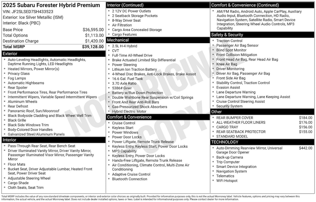 - Tracker system: MySubaru Security (6-month free trial included)